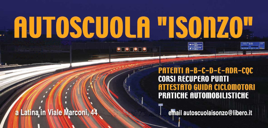 | AUTOSCUOLA AGENZIA ISONZO viale G.Marconi 44 Tel e Fax.: 0773239739 mail: autoscuolaisonzo@libero.it | ||